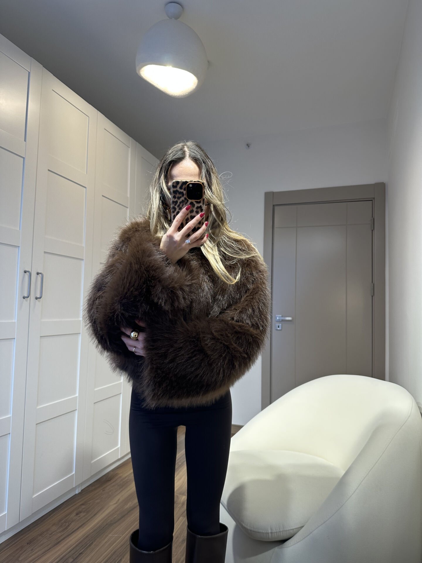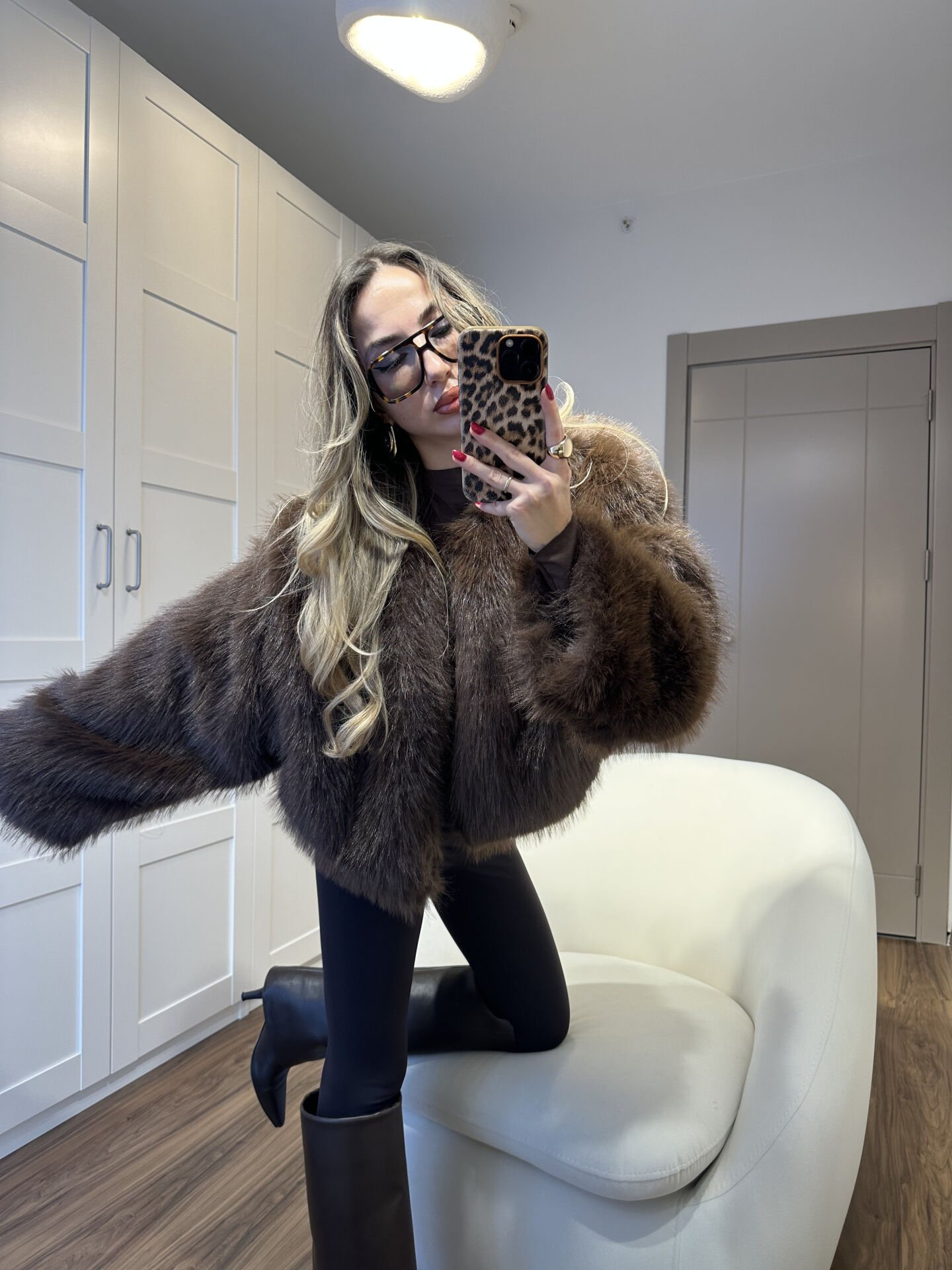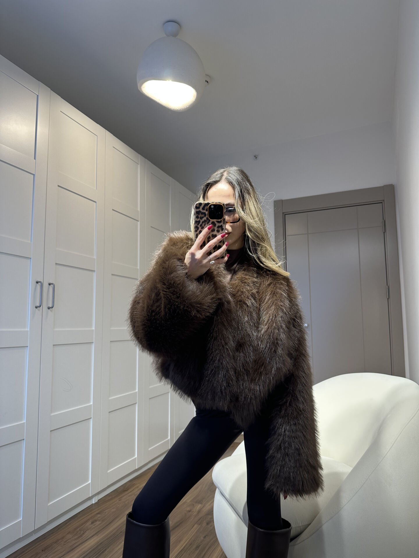 Yumuşak ve dolgun kürk dokusuyla hem sıcak tutan hem de şık bir görünüm sunan bu acı kahve kürk, bel hizasındaki modern kesimiyle günlük ve gece kombinlerine kolayca uyum sağlar. Konforlu yapısıyla gün boyu rahat bir kullanım sağlar.