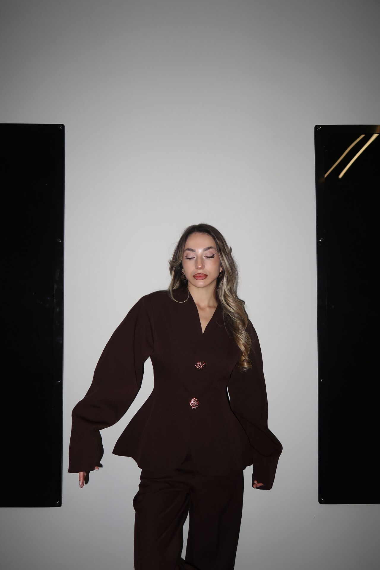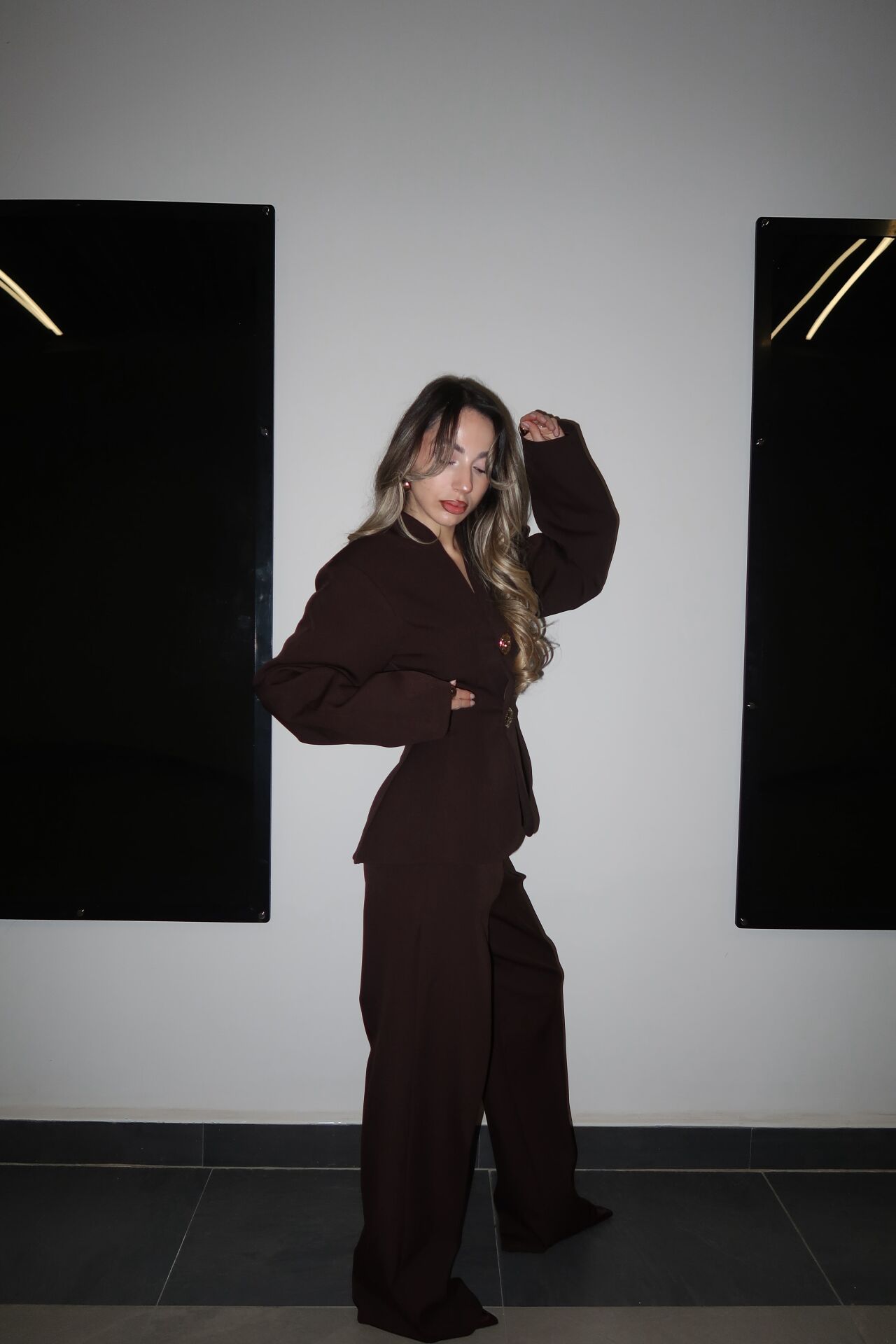Zarafet ve güçlü duruşu bir araya getiren bu özel dikim takım; gold düğme detaylı, belden oturtmalı ceketi ve akıcı dokulu, plazo kesim kumaş pantolonuyla şıklığı ön plana çıkarır. Günlük şıklıktan davet stiline kadar birçok kombine kolayca uyum sağlar.