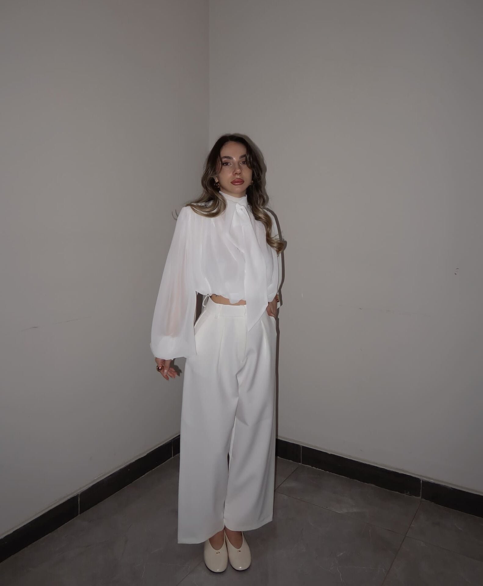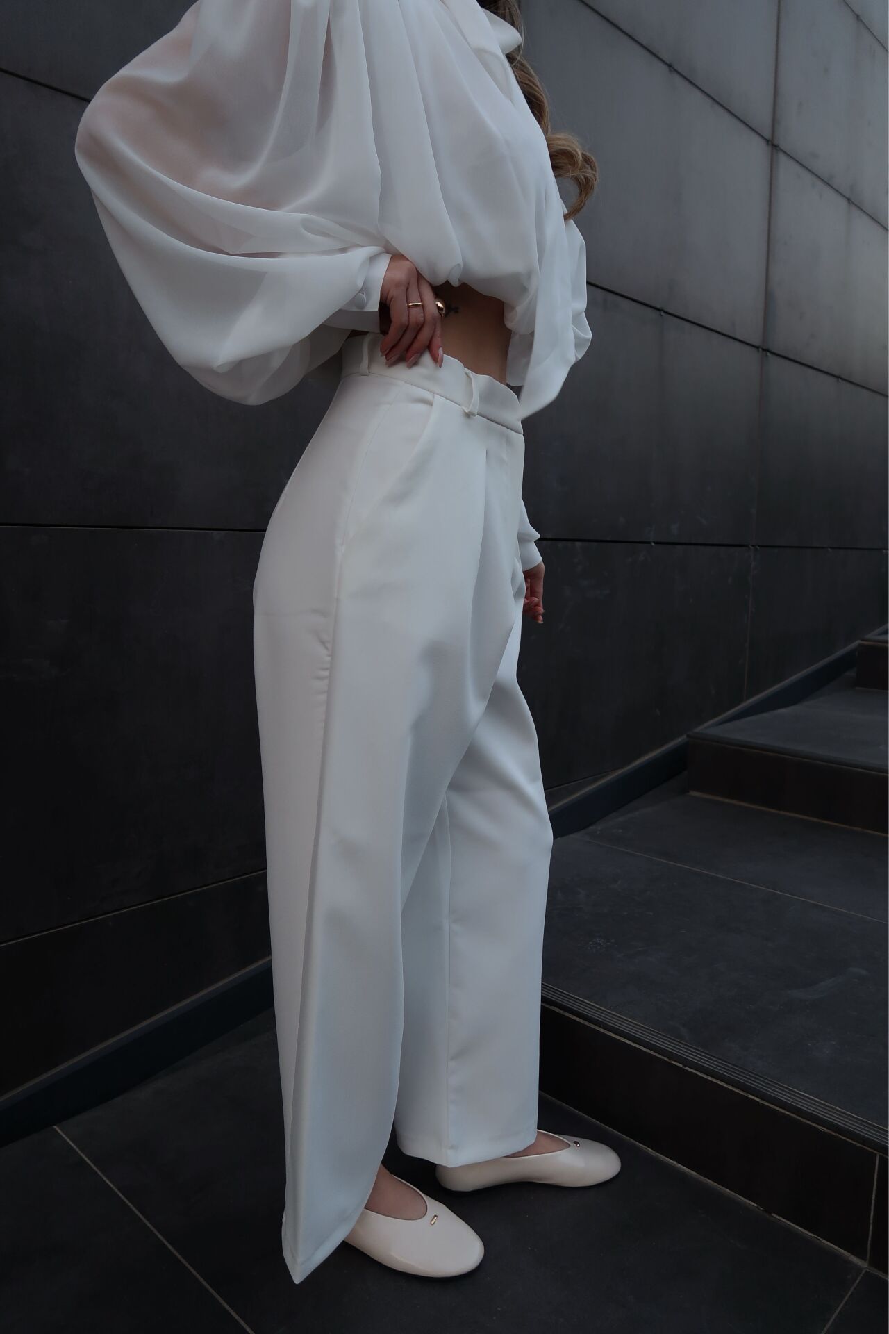 Elegance Beyaz Bilek Boy Kumaş Pantolon