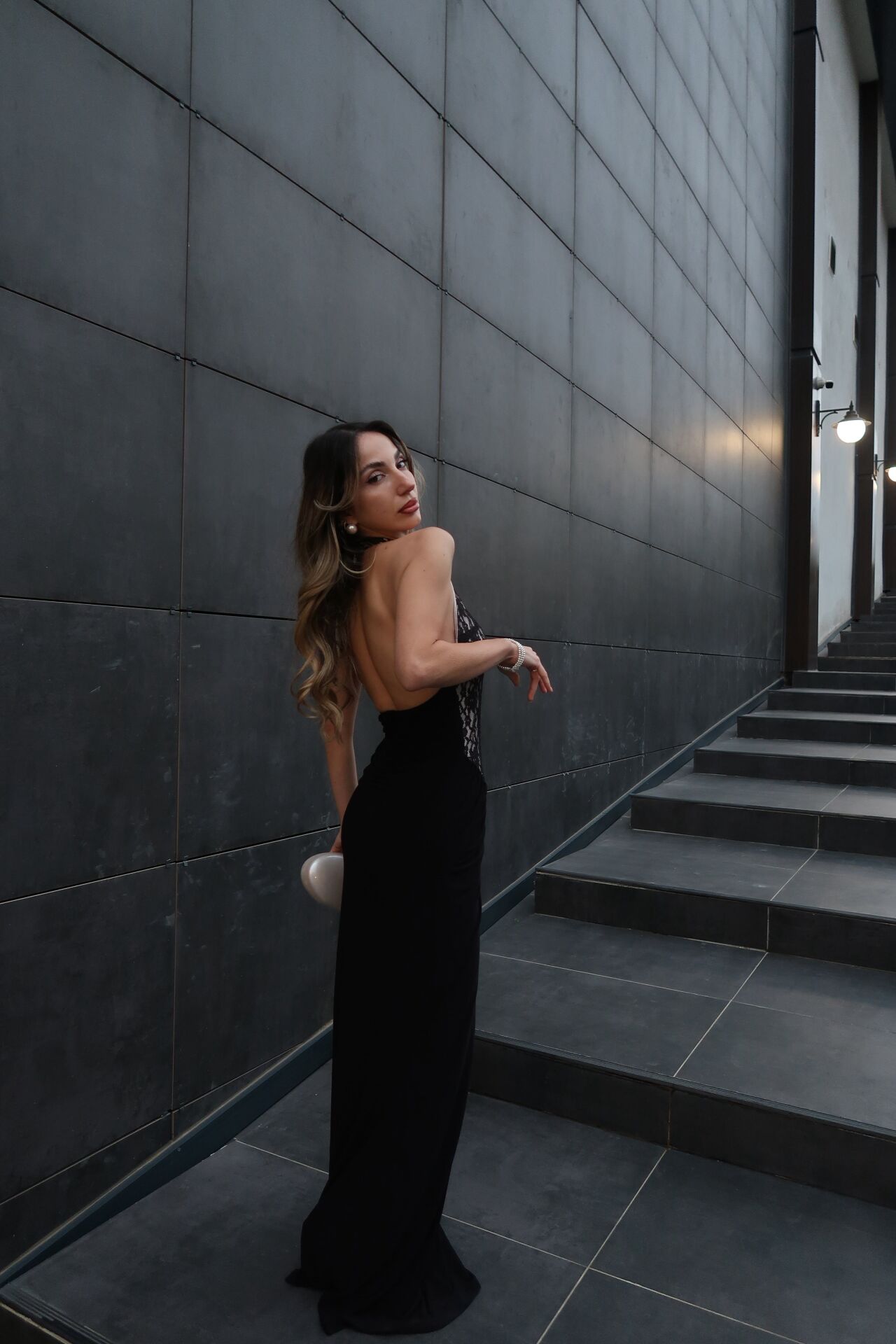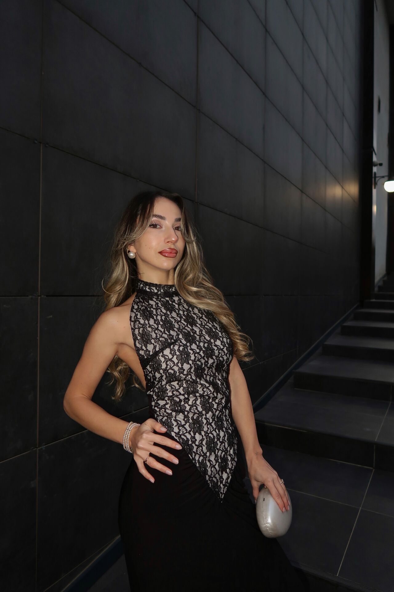 Dantelli tasarımıyla zarafeti ön plana çıkaran siyah elbise, şık ve feminen bir görünüm sunar. Özel günler, davetler ve akşam organizasyonları için ideal bir tercihtir. Zamansız siyah rengi ve dantel detaylarıyla klasik şıklığı modern bir çizgide tamamlar.