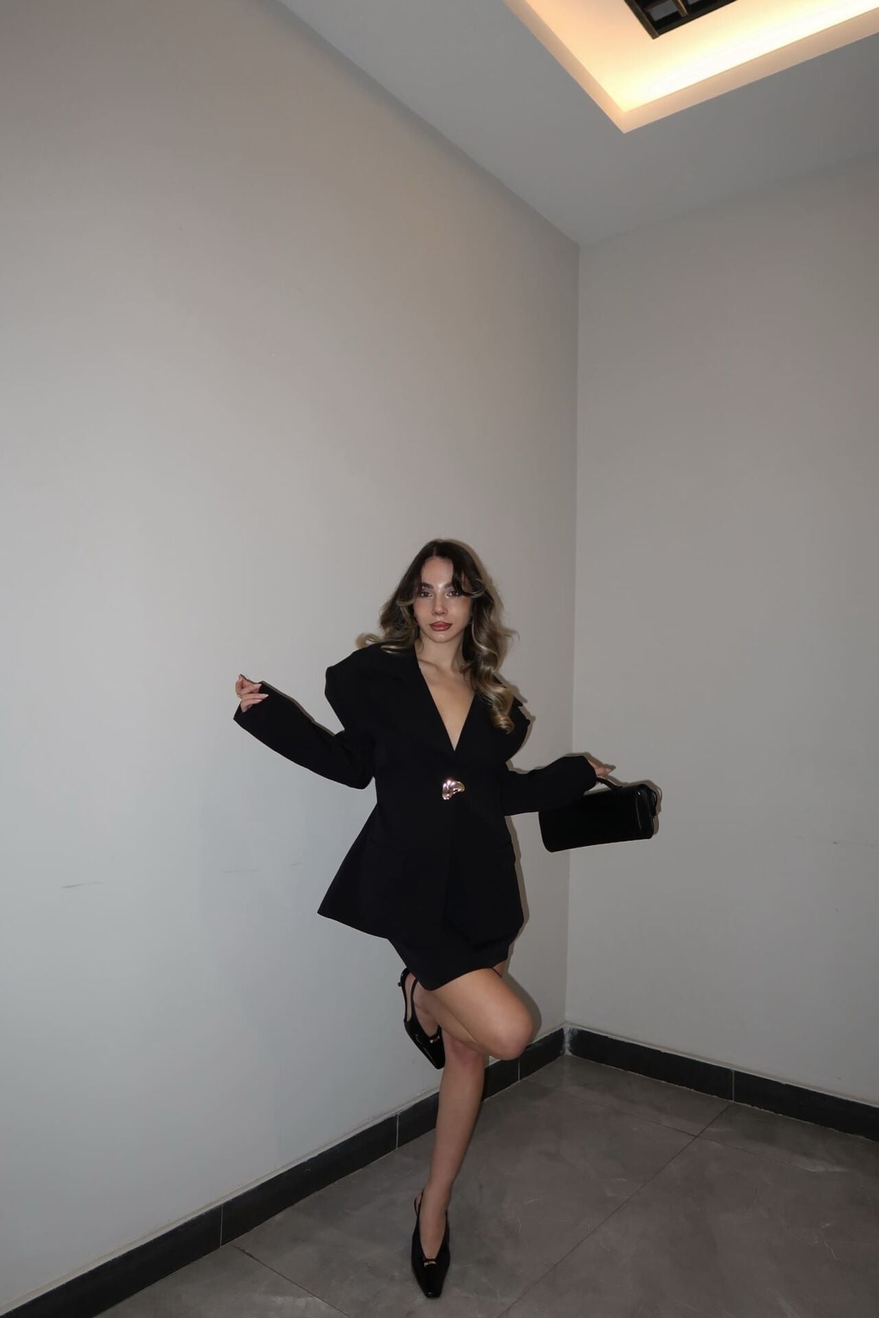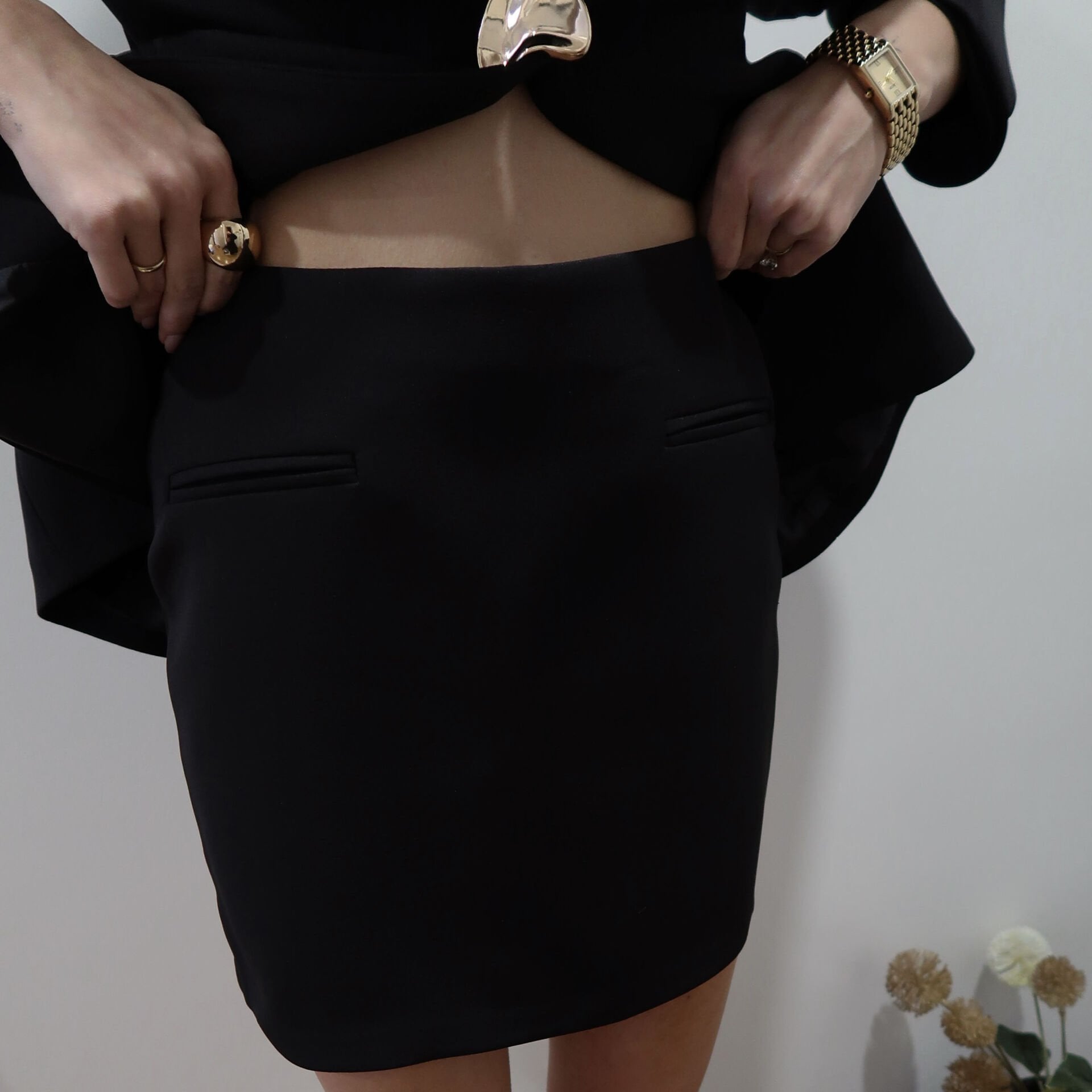 Güçlü ve iddialı bir duruş sunan bu takım, vatkalı ceket tasarımıyla modern ve keskin bir siluet oluşturur. Uyumlu etek detayı ile feminen şıklığı dengelerken, hem günlük kombinlerde hem de özel davetlerde sofistike bir stil yaratır.