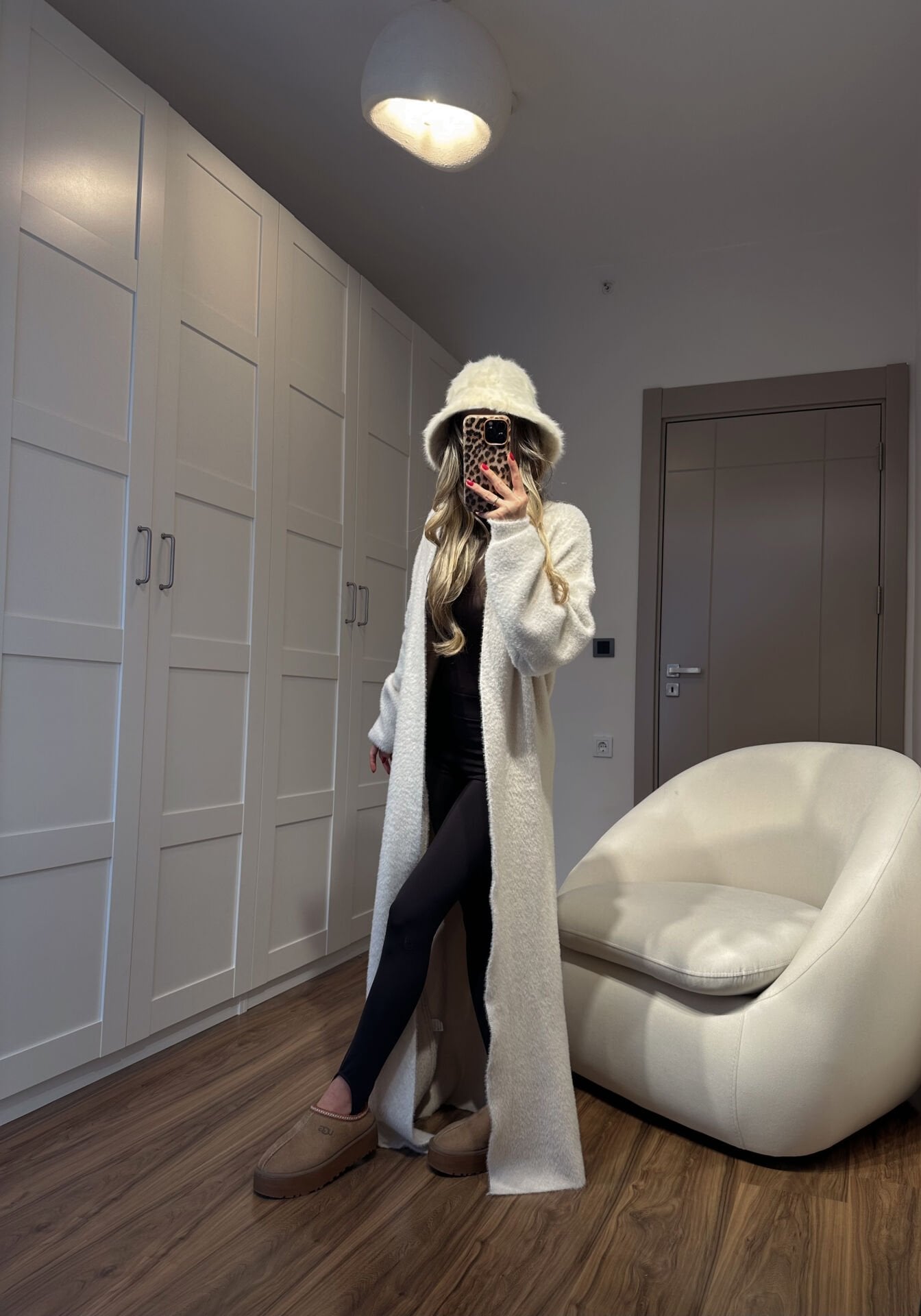 Yumuşak ve sakallı dokusuyla sıcak tutan, uzun formuyla hem şık hem de rahat bir görünüm sunan hırka. Günlük stilinizde elbiselerle, taytlarla veya jeanlerle kolayca kombinlenebilir.