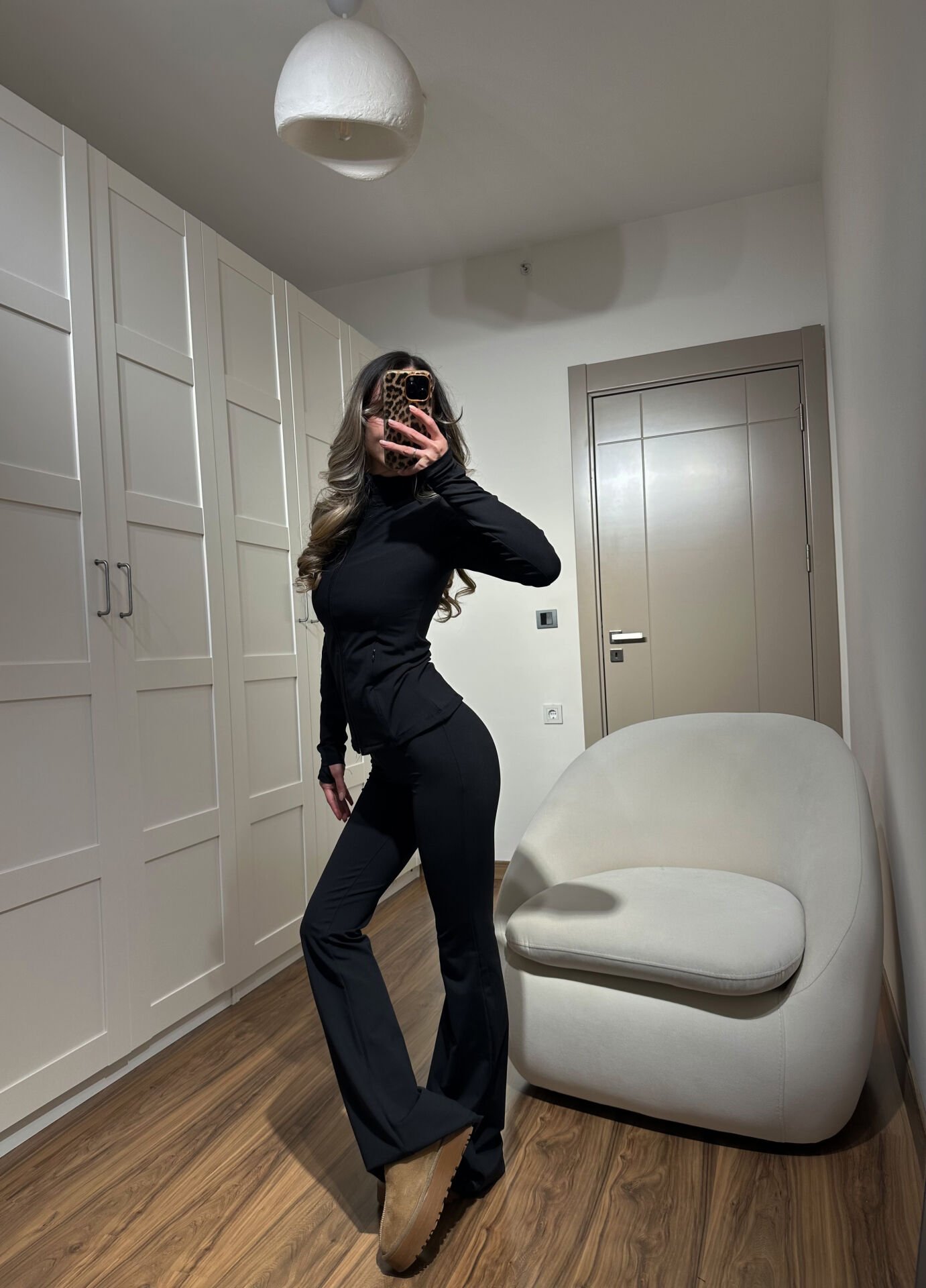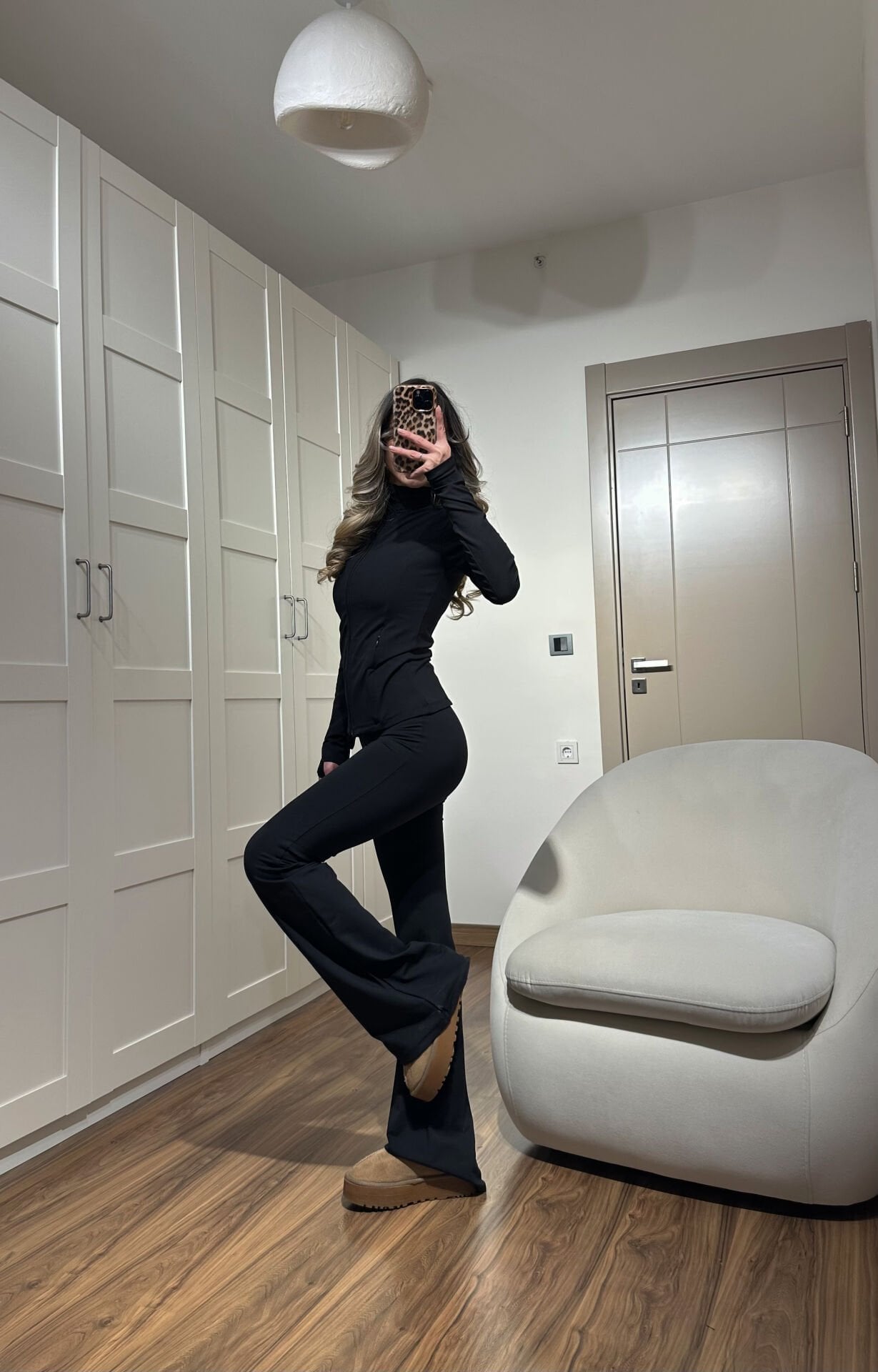 Yüksek bel, beli lastikli ve İspanyol paça tayt ise vücuda uyum sağlayarak rahat ve zarif bir duruş oluşturur.