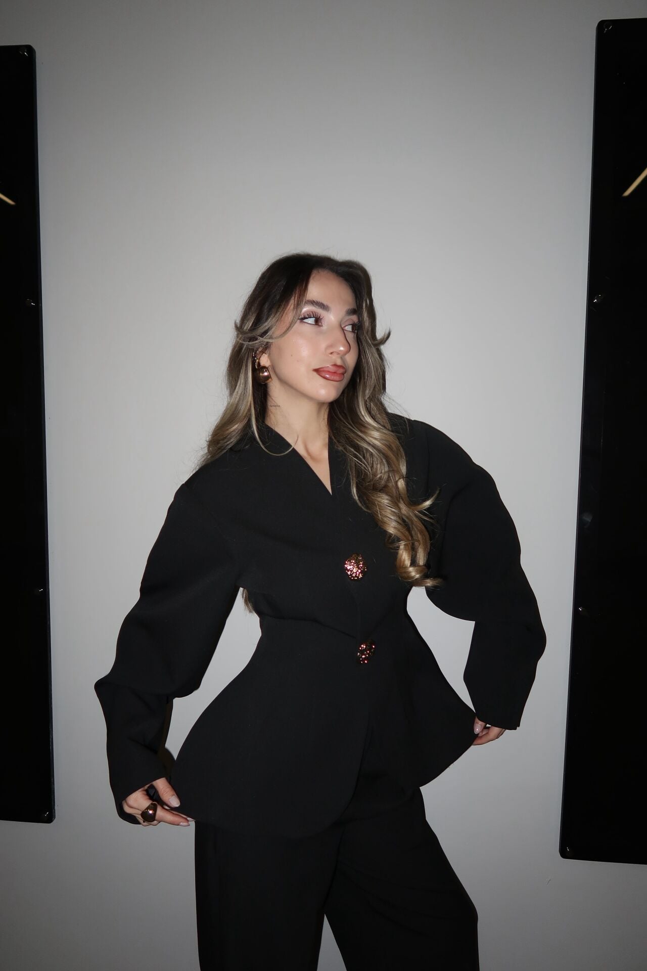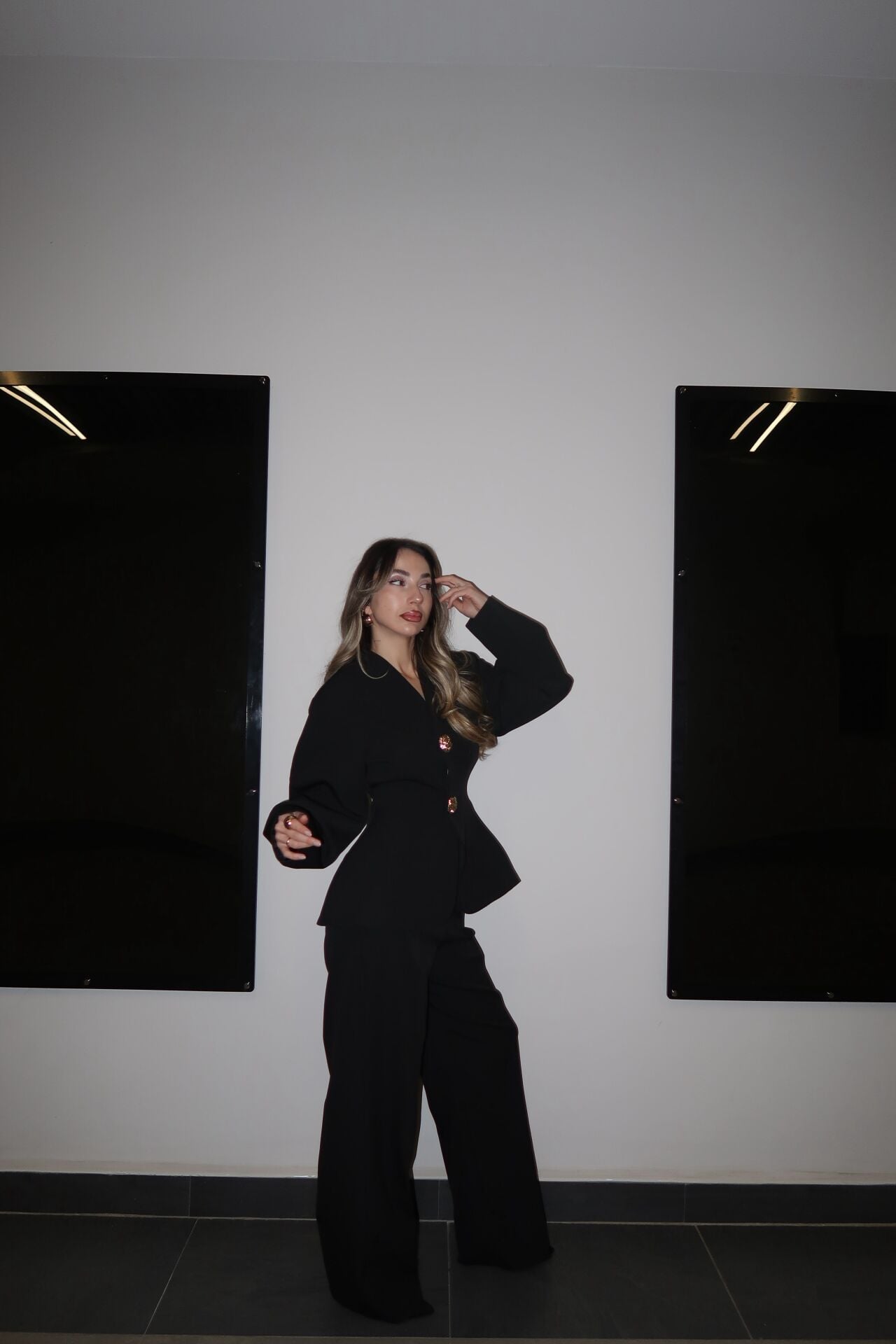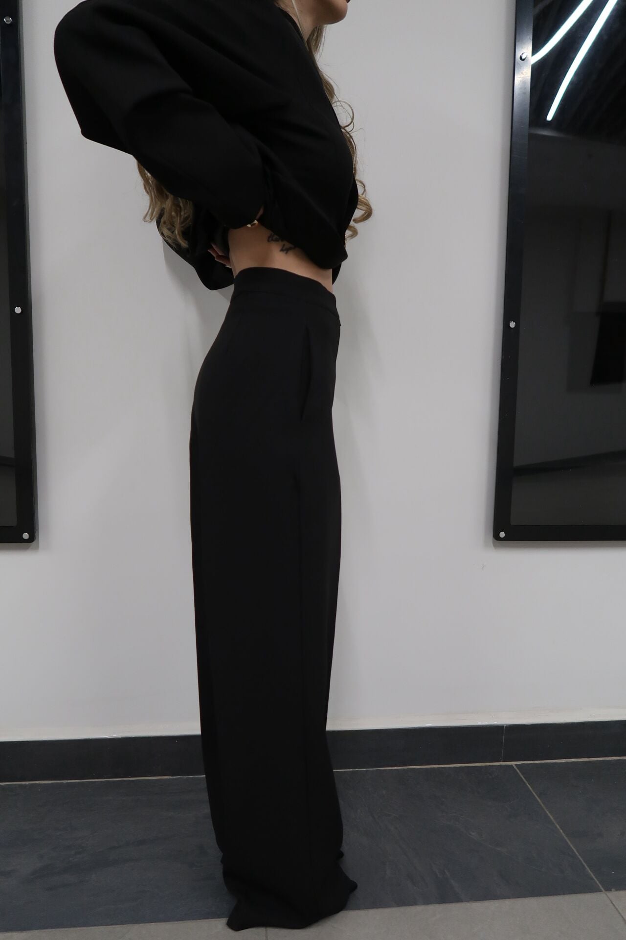 Zarafet ve güçlü duruşu bir araya getiren bu özel dikim takım; gold düğme detaylı, belden oturtmalı ceketi ve akıcı dokulu, plazo kesim kumaş pantolonuyla şıklığı ön plana çıkarır. Günlük şıklıktan davet stiline kadar birçok kombine kolayca uyum sağlar.