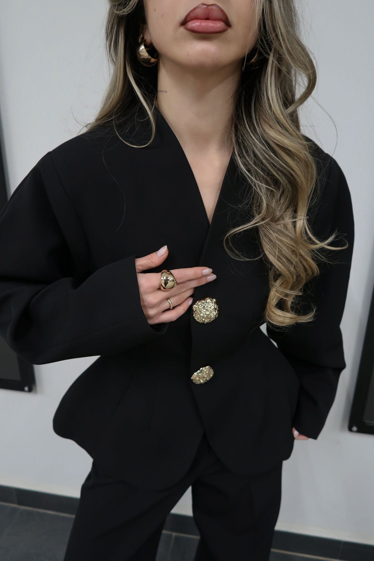 Siyah Gold Düğme Detay Takım