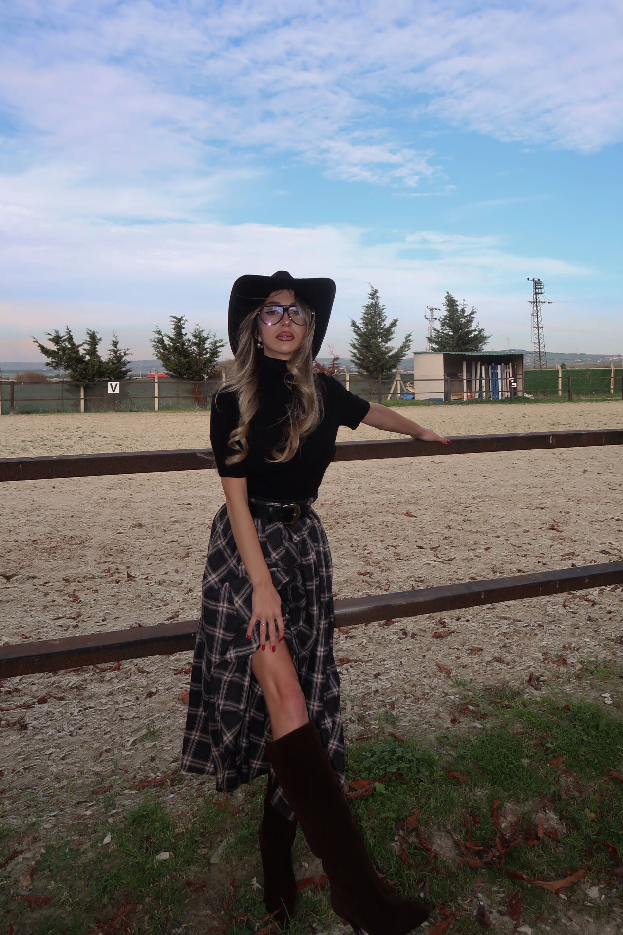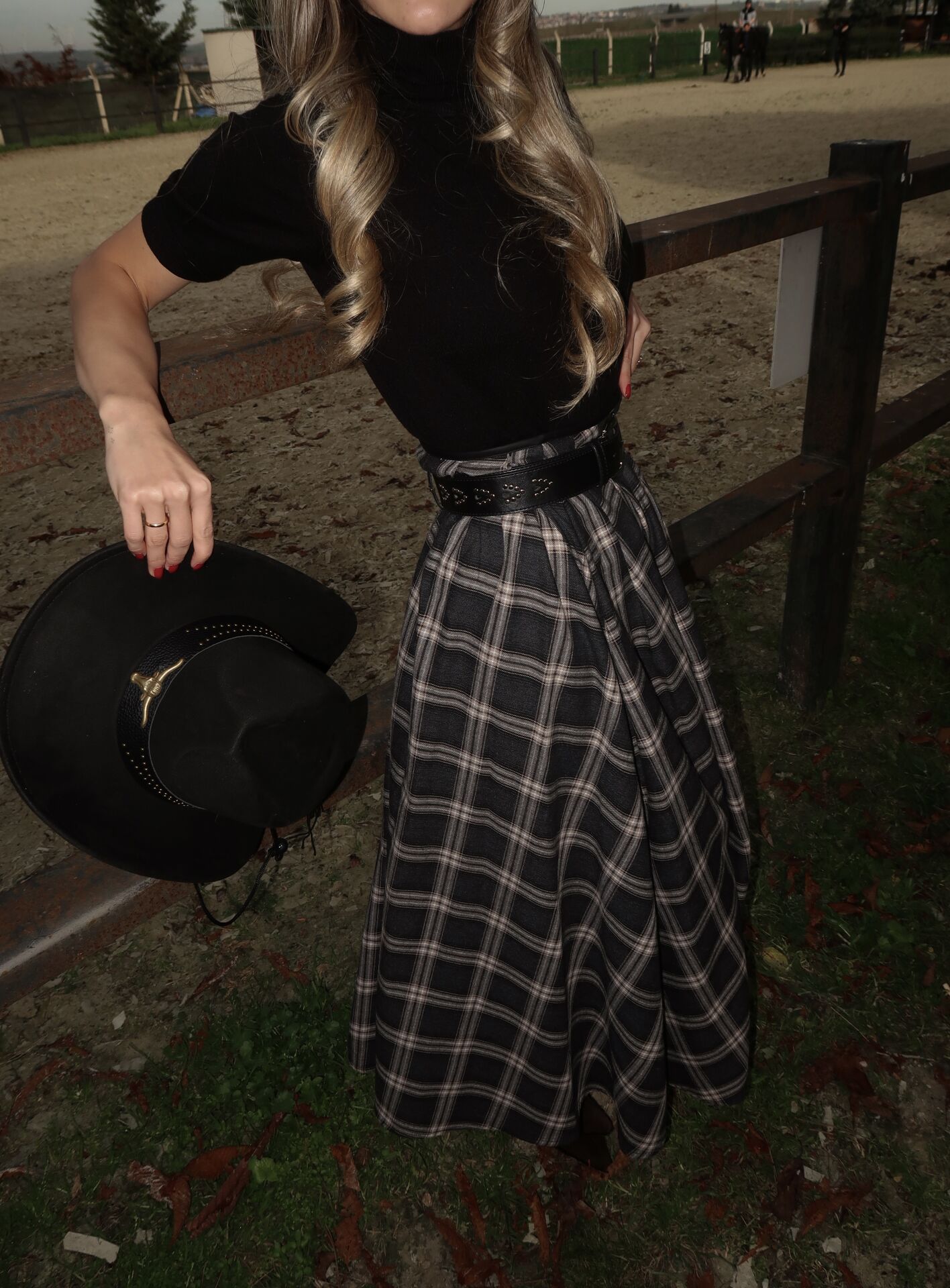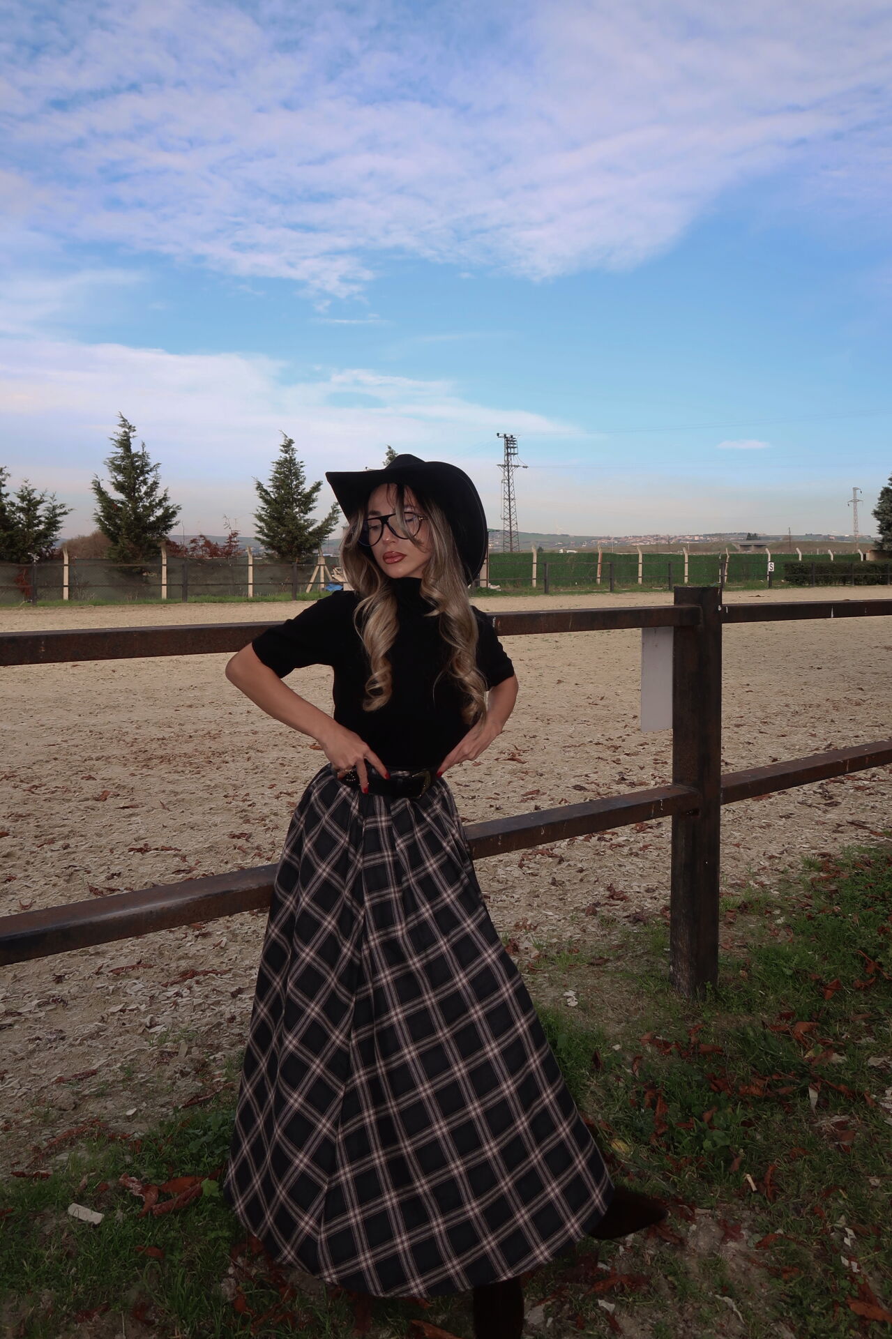 Ekose desenli etek, yüksek bel formu ve bel kısmındaki deri detayıyla modern ve iddialı bir stil sunar. Fermuarlı yapısı kullanım kolaylığı sağlarken, uzun kesimiyle zarif bir duruş kazandırır. Günlük kombinlerden şık davet stillerine kadar farklı kullanım alanlarına uygundur.